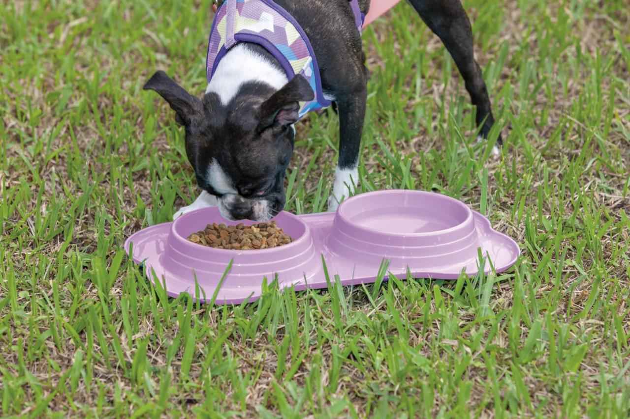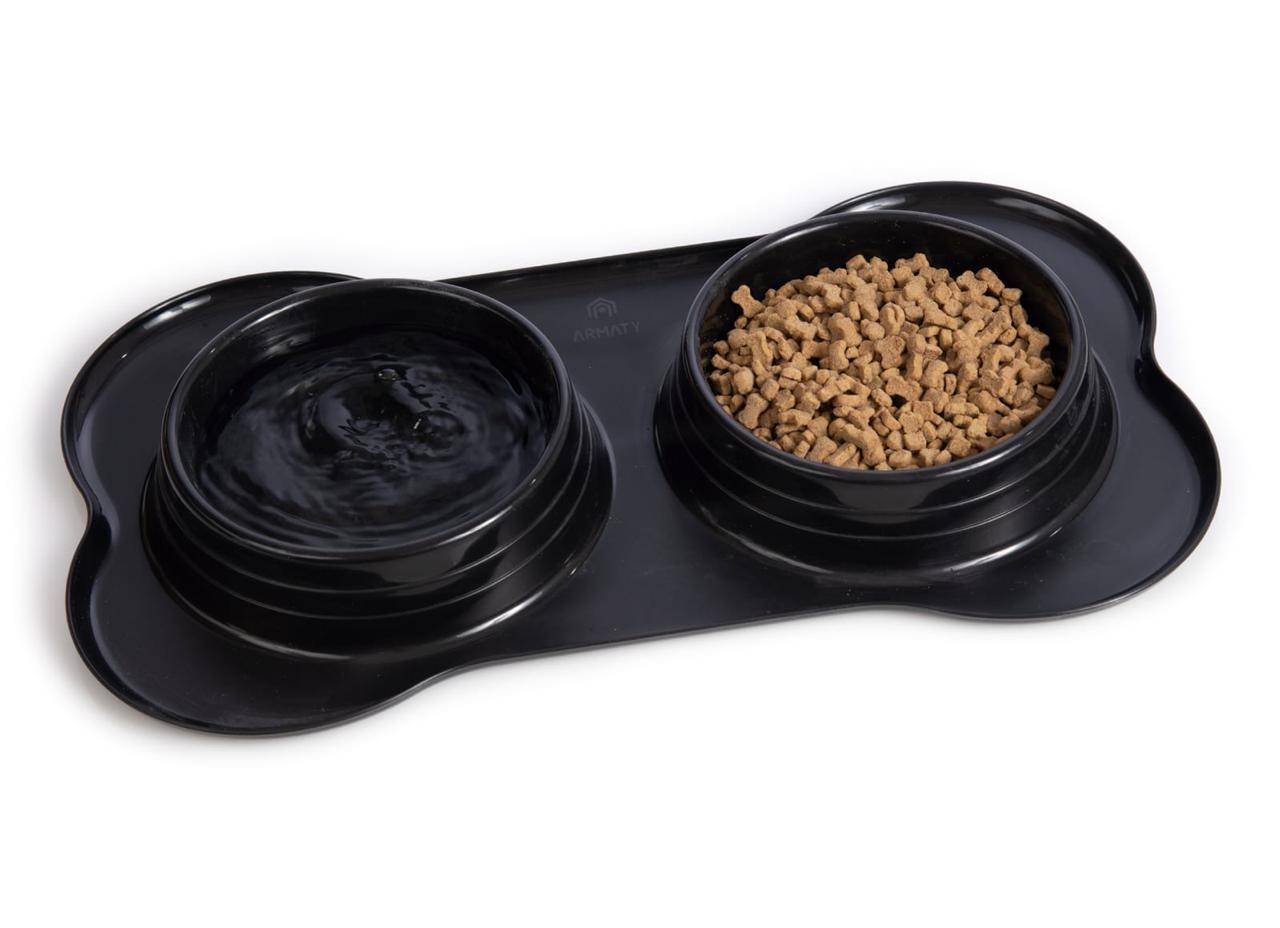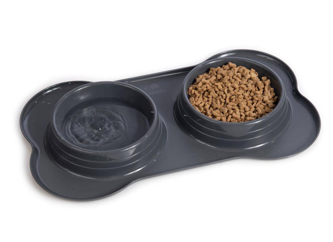 Este ingenioso accesorio presenta dos compartimentos separados, permitiendo que tus mascotas disfruten de su comida y agua al mismo tiempo y en un solo lugar.