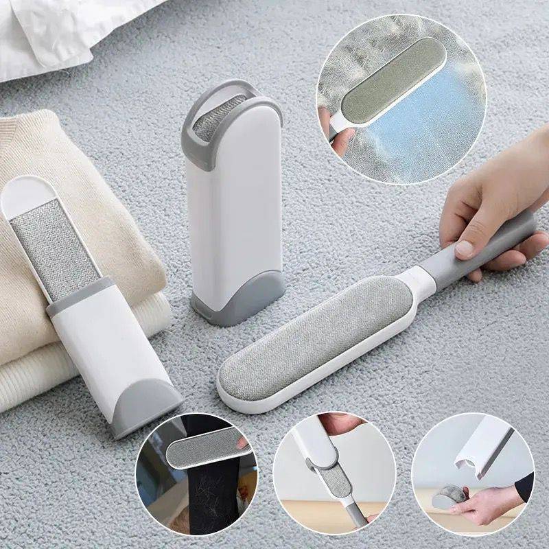 Limpiador de doble cara para remover de manera rápida y efectiva, las pelusas de las prendas de vestir, muebles y camas.